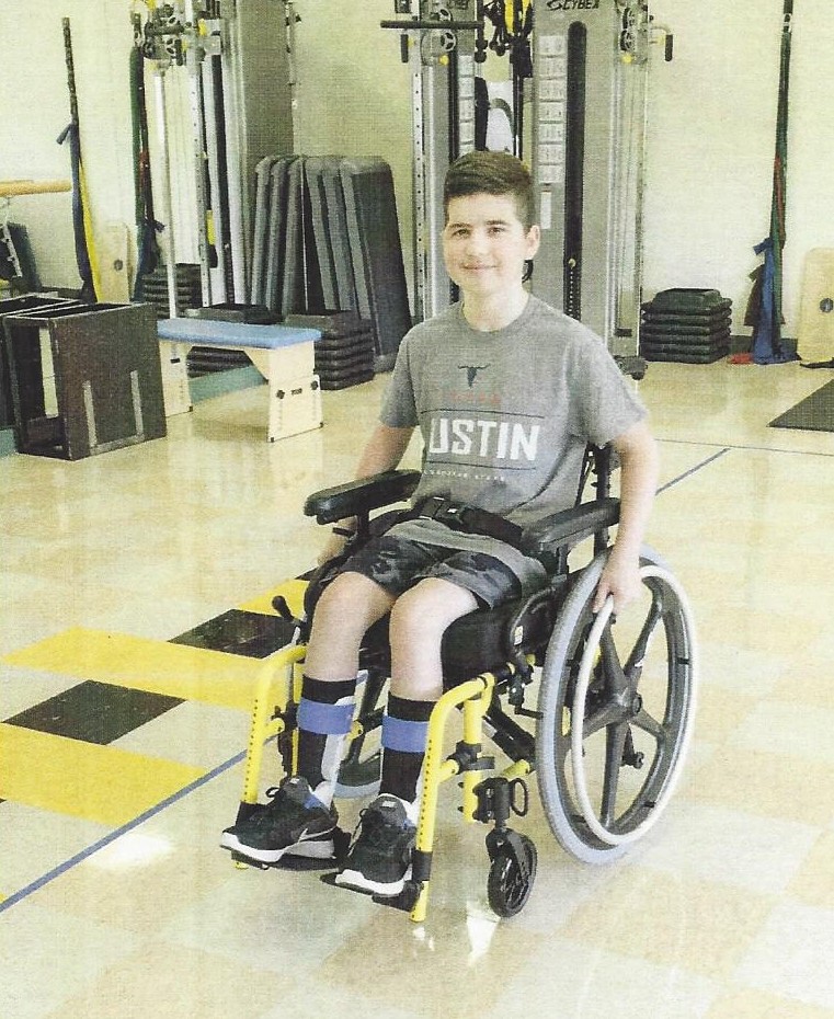 Meet 14-year-old Devin.  He suffered a traumatic brain injury on July 4, 2016, after a devastating accident involving a car and a golf cart in which he was a passenger.  His path to recovery has been a long one, but Devin is a fighter.  As a result of his TBI, Devin has developmental delay, and spends much of his time in his wheelchair.  He isn’t walking independently, but he has made progress using his gait trainer.