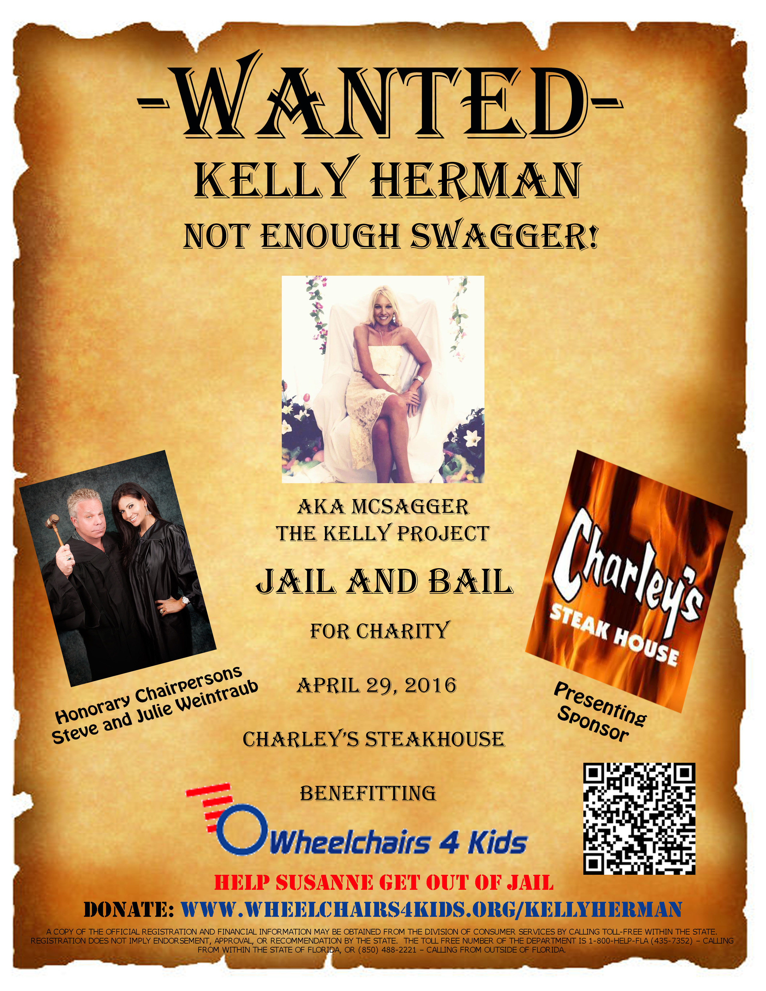 Crime: Not having enough Swagger! Kelly Herman aka “McSagger” has been seen DANCING in public! She has NO dance moves. Kelly feels her dance “moves” are cool. They’re a complete assault to innocent people’s eyeballs! She must be stopped since she has NO “Moves like Swagger”. Kelly is a mom of two wonderful girls. She lives in Trinity area of Pasco County. Kelly spends her time helping others in the Tampa Bay Area, since giving back is truly her life’s work. Let’s free Kelly! She needs your help! Every donation will help a child in need!