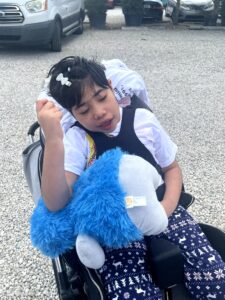 Genesis loves simple joys, like going for walks to the park where she can watch other children run and play. She treasures her soft blanket, which brings her comfort wherever she goes, and she has a growing collection of beloved stuffies. Sweet potatoes are her favorite food, and she especially enjoys attending physical therapy, where she continues to work hard and show her determination.