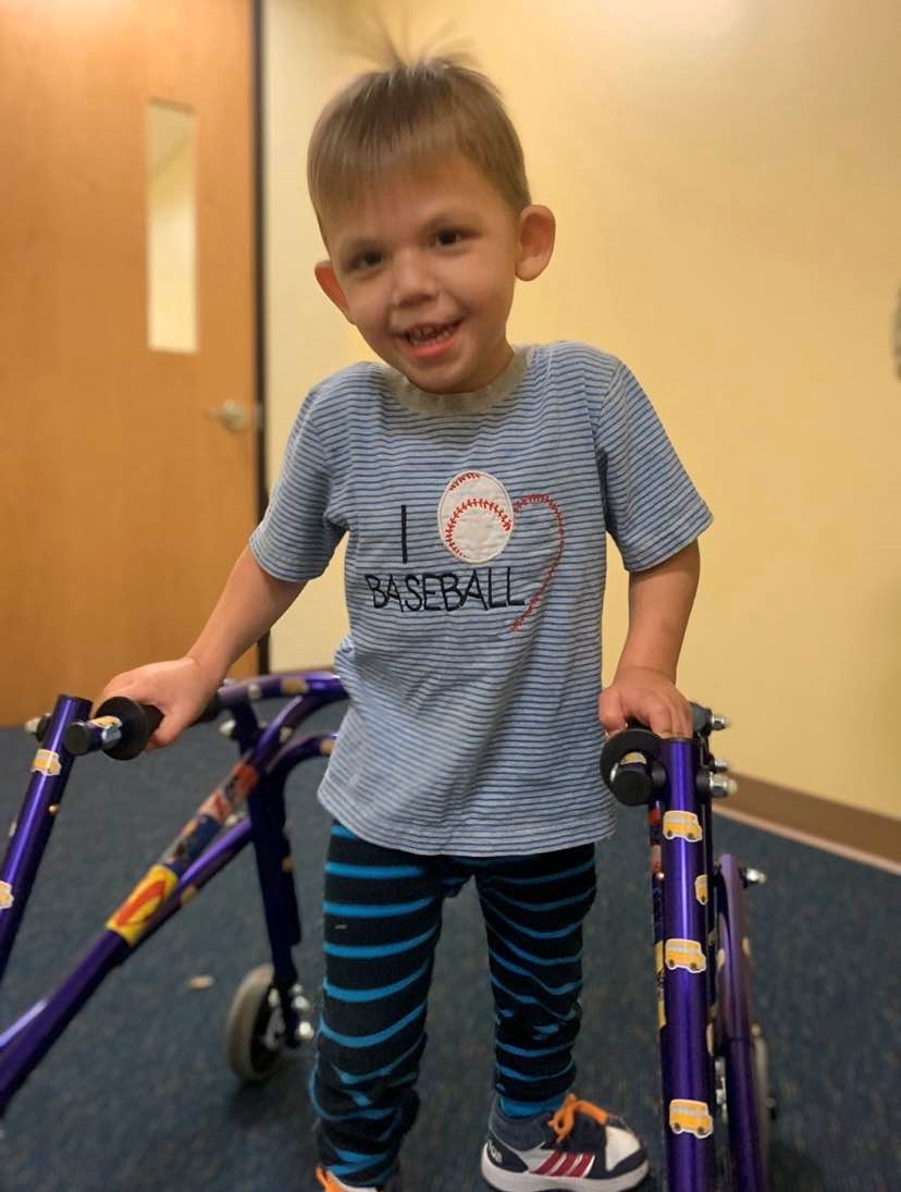 Meet seven-year-old Bennett. He was diagnosed with Hydrocephalus and Chromosome 6 deletion. The combination causes developmental delays and many other challenges. Bennett is nonverbal, although he is slowly and determinedly learning how to speak. He is also beginning to stand and walk using his gait trainer. He tries his best to be independent and go from sitting to standing without help. Bennett is a remarkable child who never lets his challenges keep him down.
