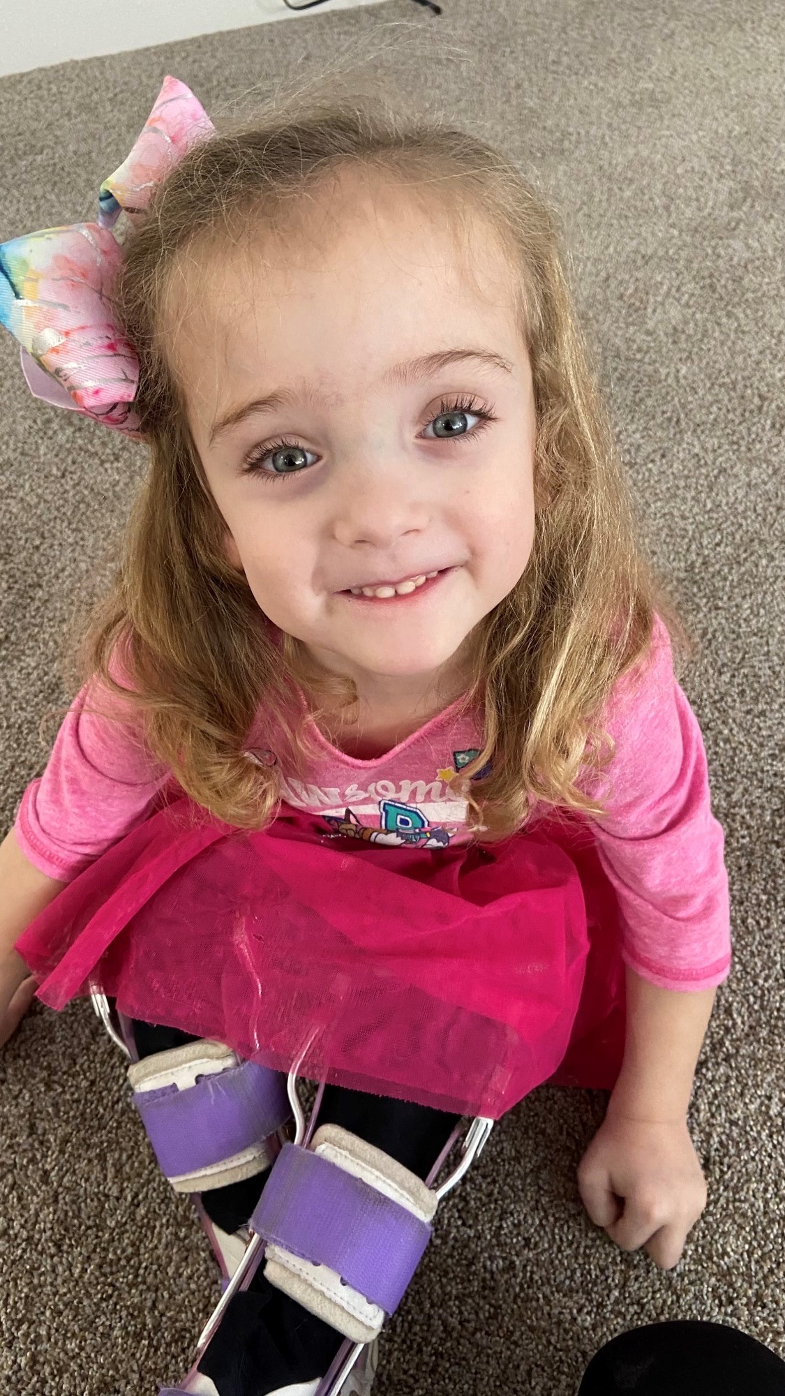 Meet four-year-old Hannah. Her life began under difficult circumstances. She was diagnosed before birth with spina bifida and needed immediate surgery. Hannah was born several weeks early. She has minimal feeling in the lower parts of her legs, and this makes walking a challenge. She is currently learning to use a gait trainer for mobility. Hannah, despite this rough start, is remarkably happy.