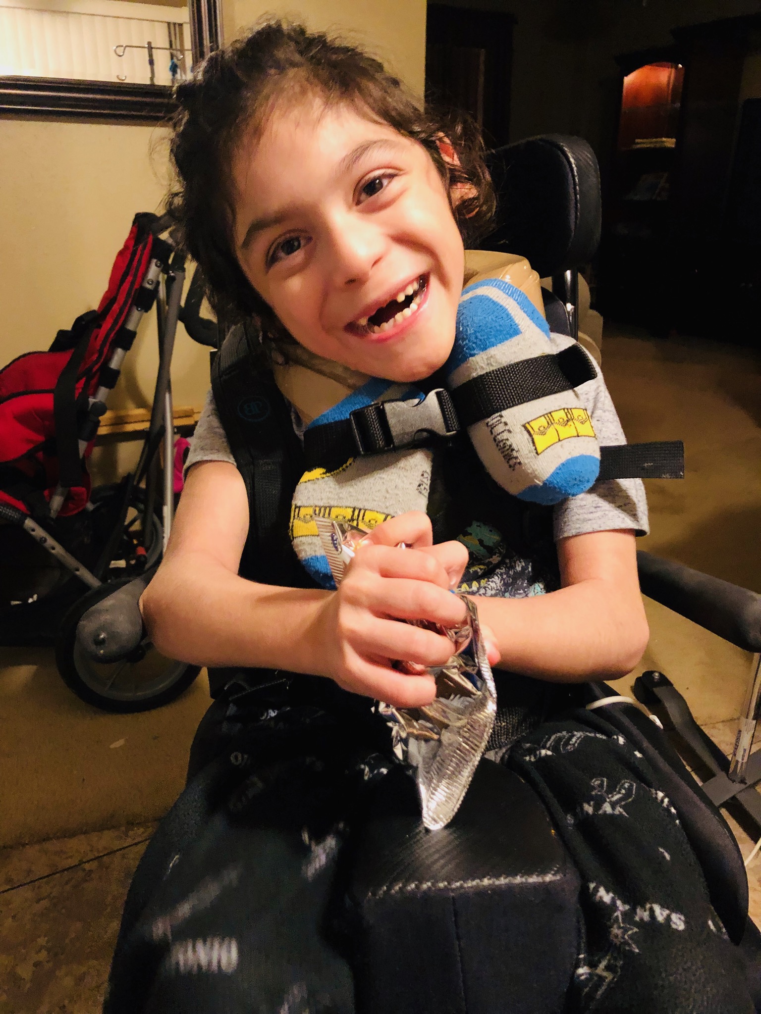 Meet seven-year-old Abraham. He was born a healthy baby, until a year later when he started having seizures. After numerous tests, doctors diagnosed him with cerebral palsy. His life became difficult. He has endured multiple surgeries, including a procedure to implant a g-tube. Abraham is unable to walk, although he can stand with assistance. Furthermore, he is learning how to speak using sentences. The young boy has a strong enough will to face any obstacle and still be happy.