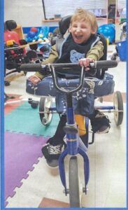 Binyamin loves going on walks in his wheelchair and doing therapy sessions that get his body moving. He enjoys happy, upbeat music and will light up to a good tune. He doesn’t watch TV, but he loves books of all kinds. His favorite animals are bunnies, and he especially enjoys visits to farms and petting zoos.
