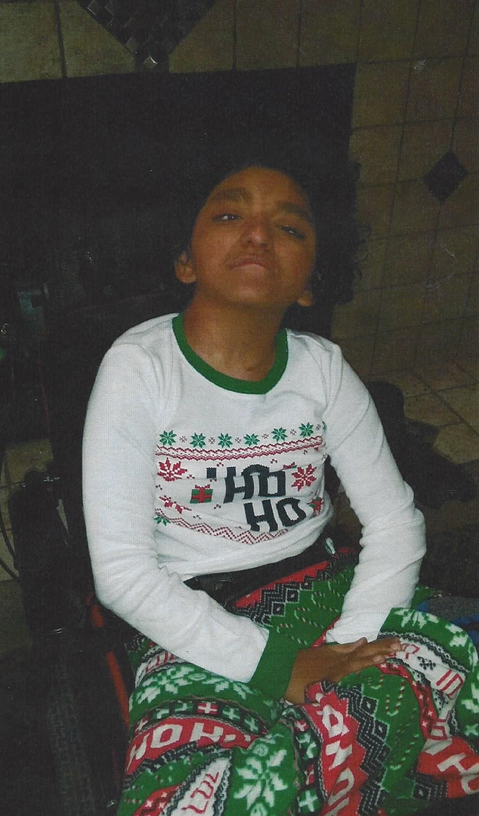 Erick is described as being full of life. This is shown by his communication. He claps his hands excitedly to answer yes. Erick rolls his eyes if his response is no. Music is another way to witness his happiness. He listens to tunes with his family, and he dances in his wheelchair whenever he hears his favorite songs. Most of all, Erick loves to laugh. He can be silent one moment, and the next he will loosen a heartfelt guffaw that causes everyone around him to laugh. Erick has an infectious personality. He is a disabled boy who can brighten anyone’s bad day.