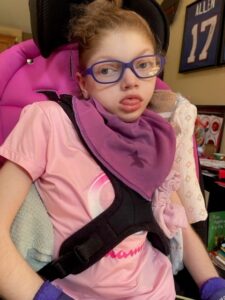 Meet nine-year-old Natalie. Natalie was born with Cerebral Palsy. She has frequent seizures and requires support for posture and full assistance with all care. Natalie is non-verbal and communicates with the help of a Tobii Eye Gaze.