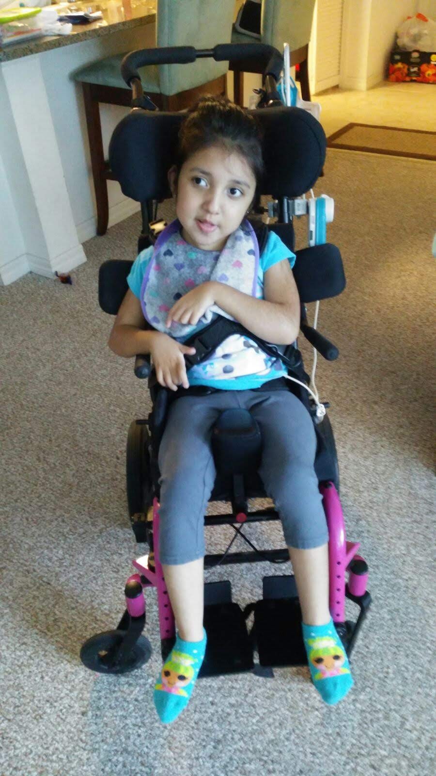 Meet nine-year-old Nathalia. She was diagnosed with cerebral palsy. She also suffered from failure to thrive at 3 months of age and weighed only 7 pounds. Each day has obstacles for the little girl. Nathalia is cognitively challenged and nonverbal. She uses a G-tube for nourishment. Nathalia also is confined to a wheelchair. Nathalia is a remarkable child who never lets these limitations get her down.