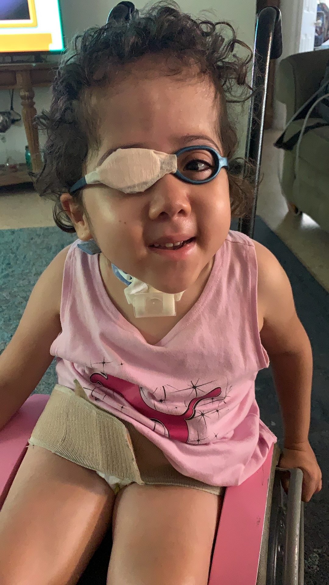 Meet seven-year-old Rebeca. She and her twin brother were born in Brazil, but they were immediately placed for adoption. Foster homes do not exist in Brazil. Instead, orphaned children live in shelters. A wonderful couple adopted Rebeca and her brother. The giving couple knew little about Rebeca, except that she had special needs. She was not officially diagnosed until after her adoption. Rebeca has Spina Bifida and Hydrocephalus. The combination of illnesses makes the brave girl’s life challenging. She cannot walk or stand. She endured a trachea and having to haul an oxygen tank. This made traveling out of the house difficult. Thankfully, Rebeca no longer is required to use the trachea. The young girl has remained positive and cheerful throughout these trials.