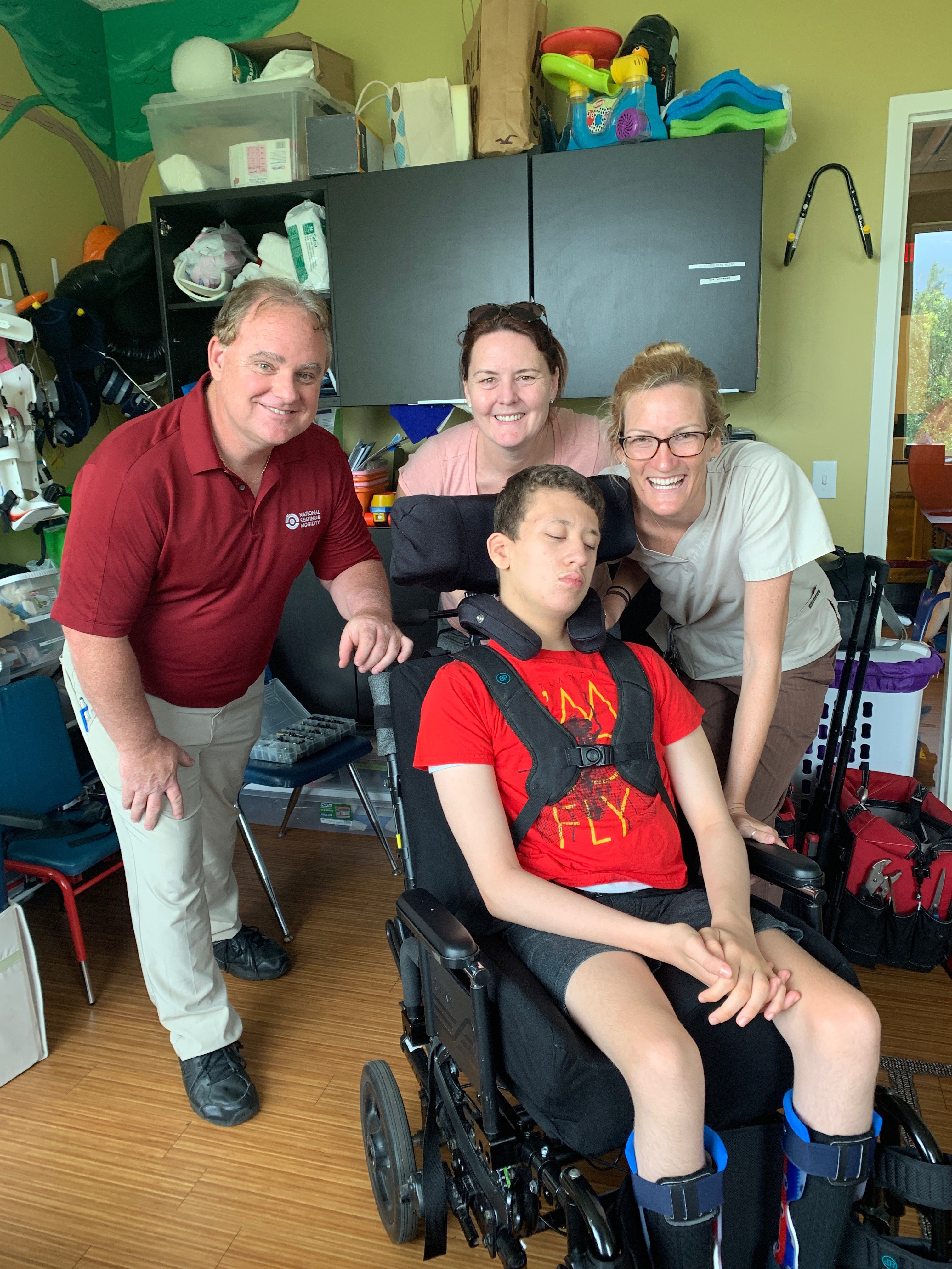 Benjamin needs a customized seat for his wheelchair. He suffers from scoliosis and a dislocated hip. The fitted seating system will help him to be more comfortable.