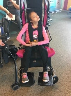 Delianys received an adapted stroller. This stroller provides the needed support for her feet and head. Something store bought strollers could no longer provide because of her size! With a proper stroller Delianys is now much more comfortable and most importantly she is safe!