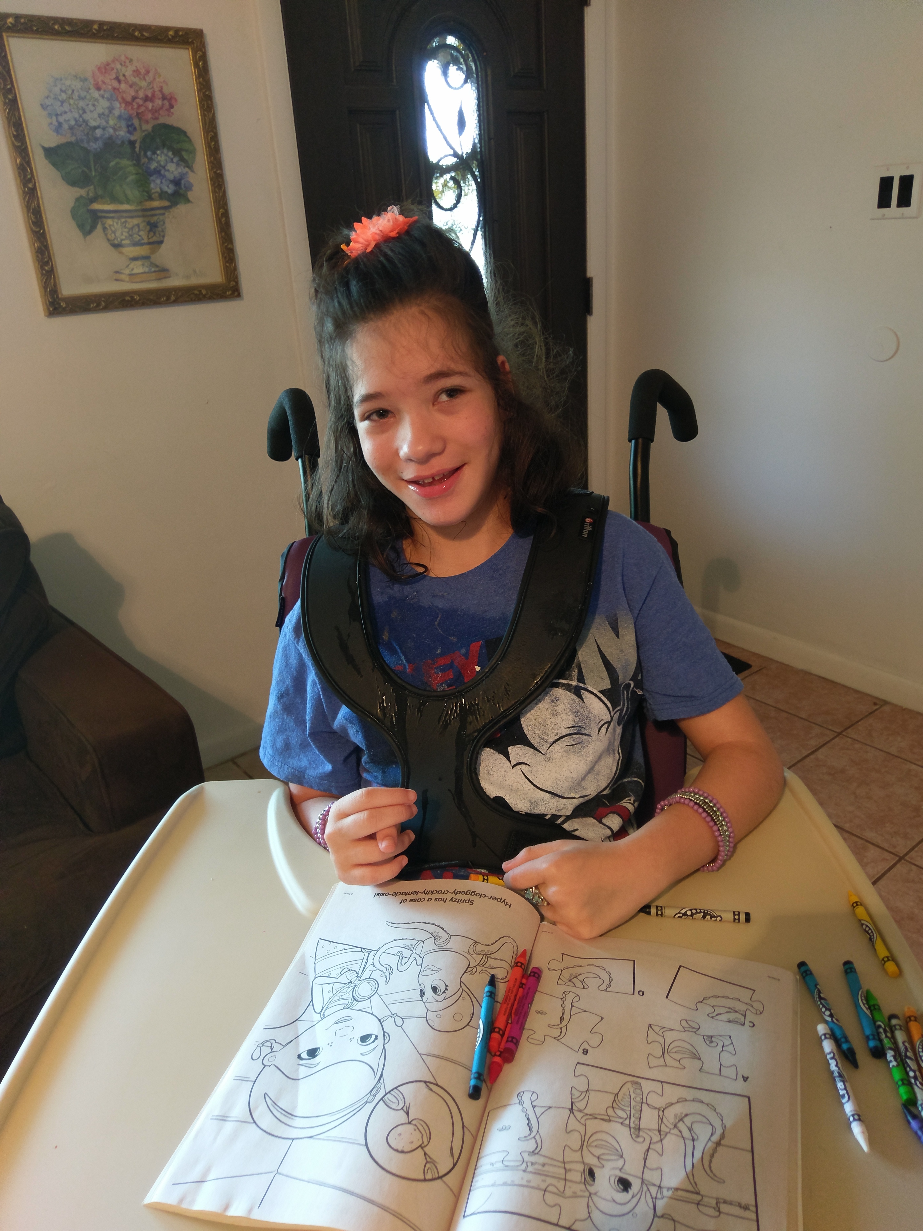 We are so happy for 11 year-old Angelina! She received her new Hi-Low activity chair with tray and couldn’t be happier! Diagnosed with cerebral palsy and epilepsy, she is unable to move around without aid. She is also nonverbal, but uses her eyes and body language to communicate. She is the apple of her mom’s eye, and for good reason.