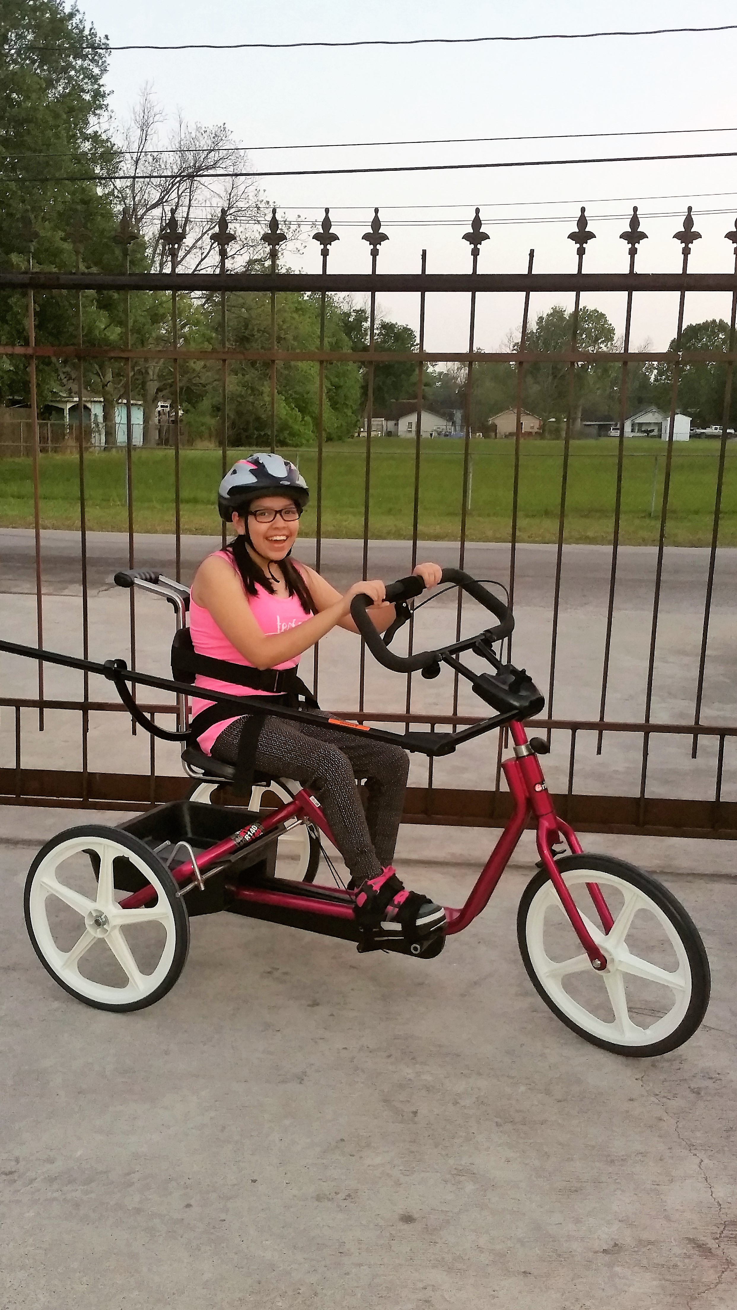 Bianca is a happy girl! She is enjoying her new adaptive tricycle which will help her posture and help strengthen her muscles. Go Bianca!
