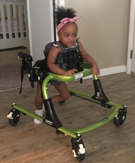 Sky needs a gait trainer to help her begin walking.