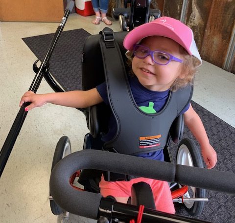Naiya received her trike and is getting more comfortable every time she uses it. This trike will not only provide Naiya with additional physical therapy to help strengthen her leg but it will also allow for family activities!