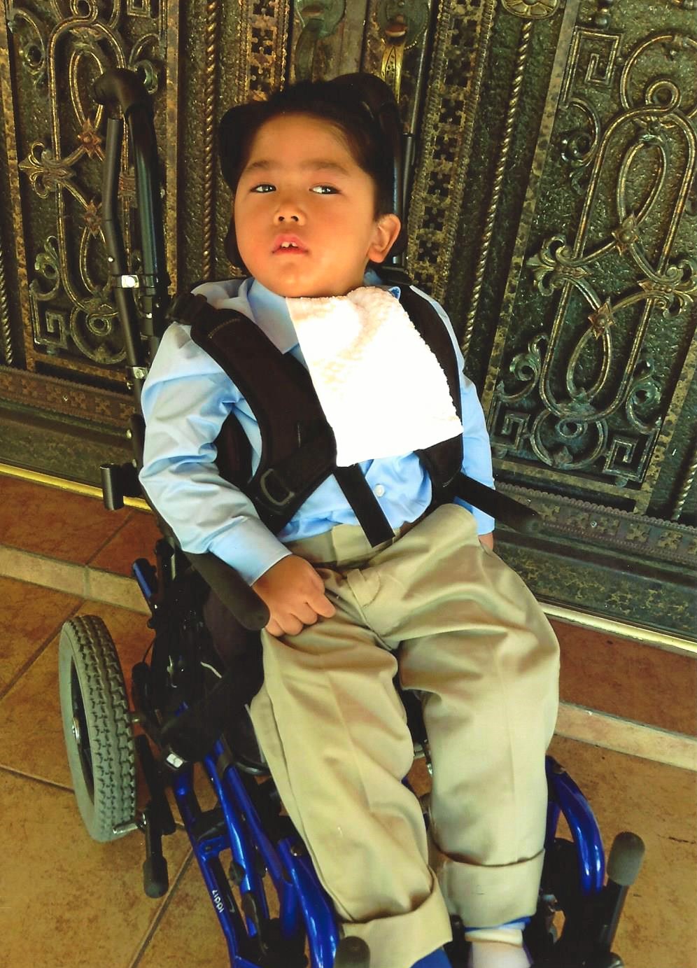 Meet 4-year-old Theo, who was diagnosed with Spastic Quadriplegia. He cannot sit up or hold his head up, is blind, and is non-verbal, but has body awareness and laughs hysterically with deep tissue pressure.